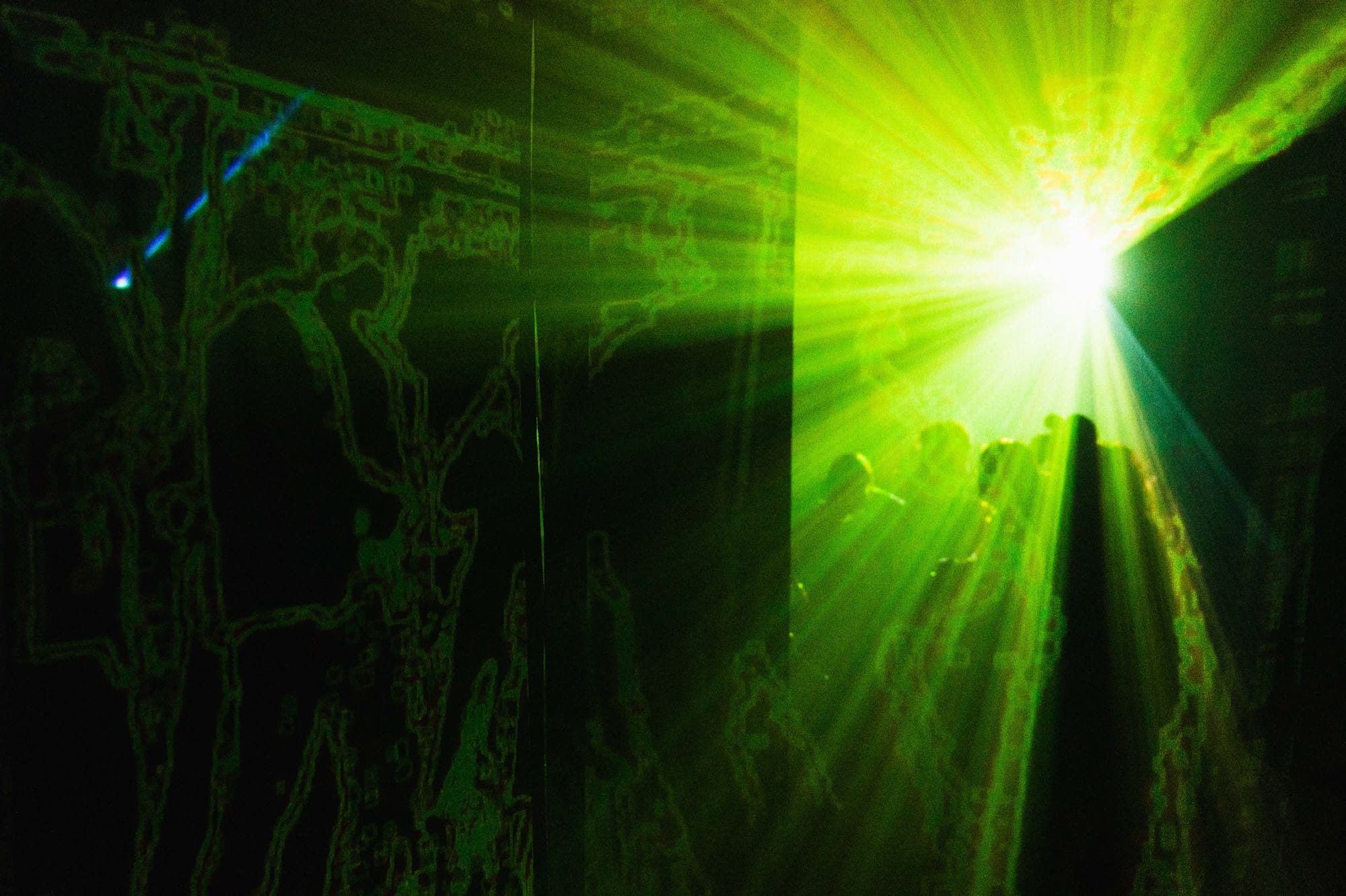 This piece proposes a technological approach to one of the most common ancestral practices of our ancestors: the ritual around the fire. Venerating a large central structure, a play of light and codes that evoke a futuristic ritual.